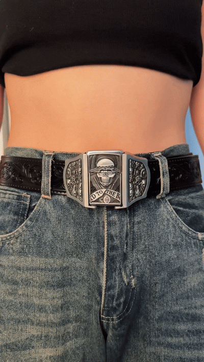 A concealed lighter inside the buckle — practical, handy and conversation-worthy.